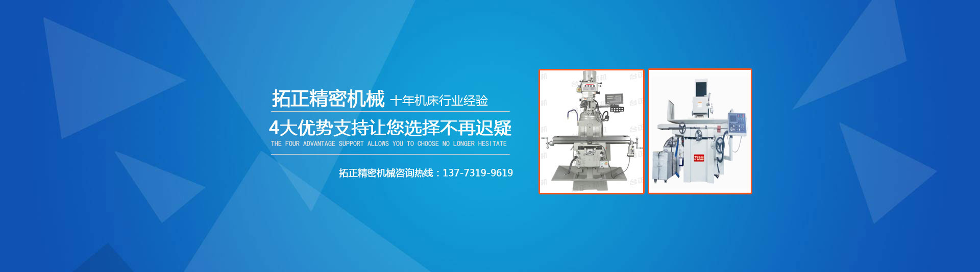 • 銷售拓正、快捷、旭正、建德等銑床系列;銷售拓正、建德、旺磐、準力、宇青、上海機床等磨床;銷售云南云機、沈陽一機、南方、臺灣金和等車床系列銷售拓正、臺灣鴻昌/鴻穎、沈陽中捷等搖臂鉆床系列;銷售數控雕銑機、火花機、加工中心機、中走絲線切割等。